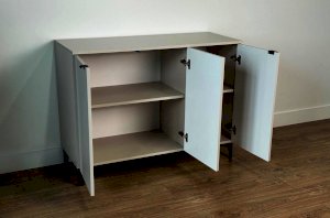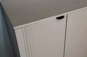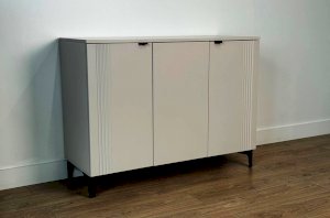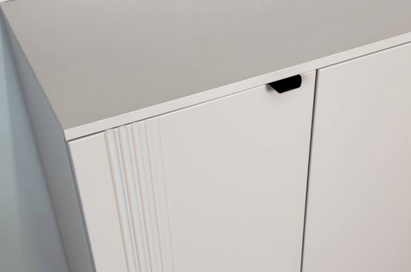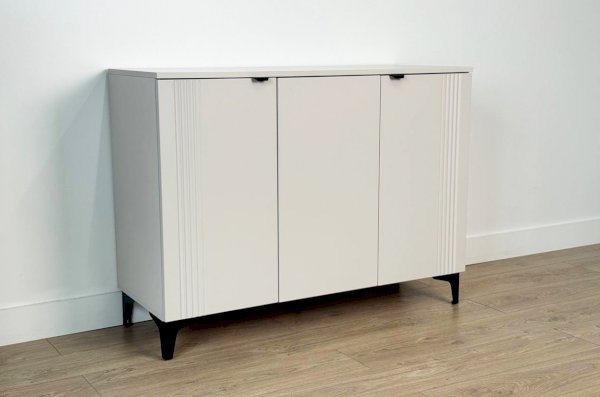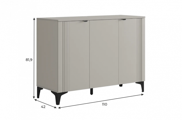 Дверцы комода выполнены из МДФ с фрезеровкой и скрывают за собой просторное хранилище для различных вещей.