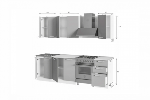 Высота верхних шкафов: 718 мм