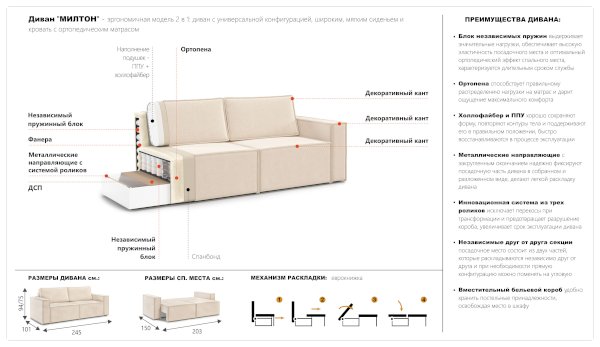 Диван Милтон (Империал) - за 60 776 руб. в Сочи. Купите на сайте mebelmarket-sochi.ru или по телефону 8(800)505-30-63 уже сегодня! Уточнить наличие, комплектацию, актуальную цену можно бесплатно у менеджера ежедневно. Закажите Диван Милтон (Империал) до конца акции! Доступна покупка в кредит, рассрочку. Доставим со склада или на заказ.
