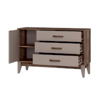 Комод «Скандика» КМ-12 – это не только вместительная, но и стильная модель, которая украсит вашу гостиную или спальню. Полка за дверцей подойдет для хранения важных мелочей, небольшой техники, фотоальбомов. Три просторных ящика позволят удобно рассортировать белье и одежду. Створка плотно фиксируется на магнитах.