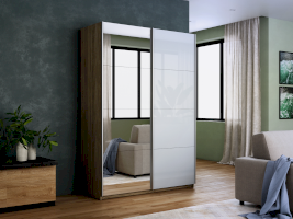 Шкаф-купе 2-х дверный Прайм Зеркало/Белое стекло 1200х2300х570 мм
