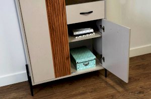 Вторая дверь, выполненная со стеклянной вставкой, позволяет демонстрировать коллекции, декоративные предметы или книги, придавая вашему пространству дополнительный шарм и элегантность.