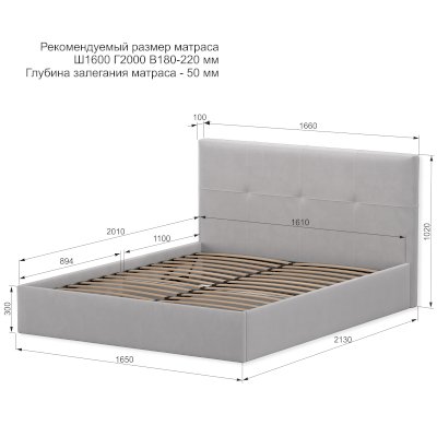Рекомендуемая высота матраса: 18-22 см